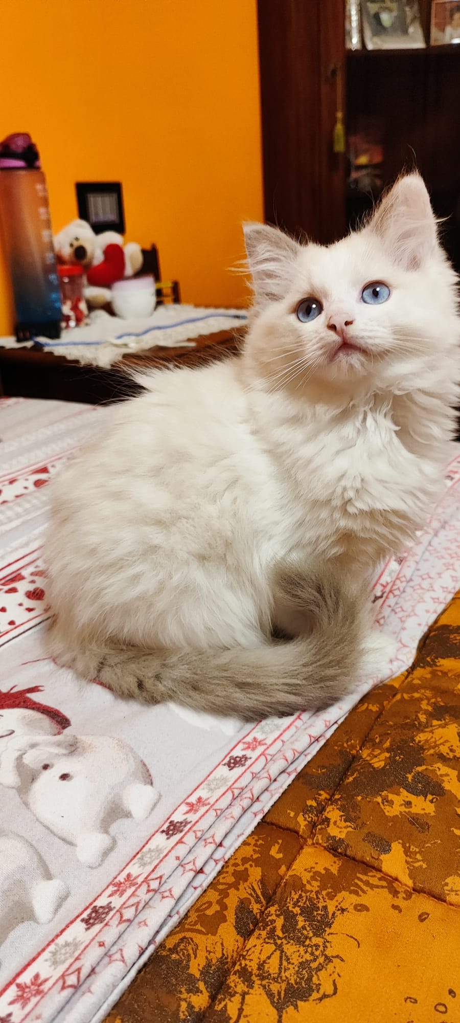 Beautiful blue point bicolor male kitten. Excellent physical structure, beautiful morphology, good markings, medium-long hair, thick, and silky coat, very long and bushy tail, intense blue eyes. Extraordinary personality!