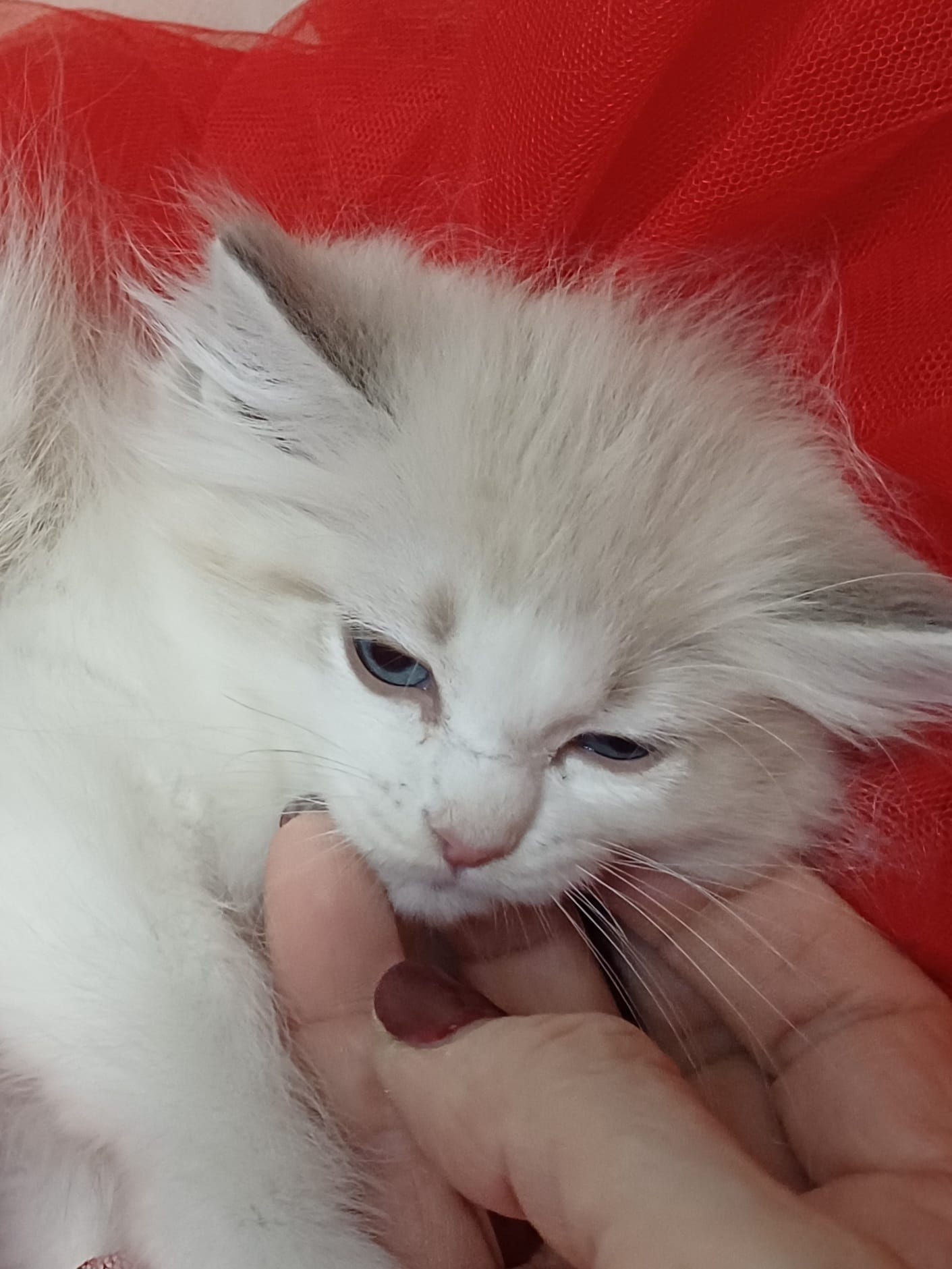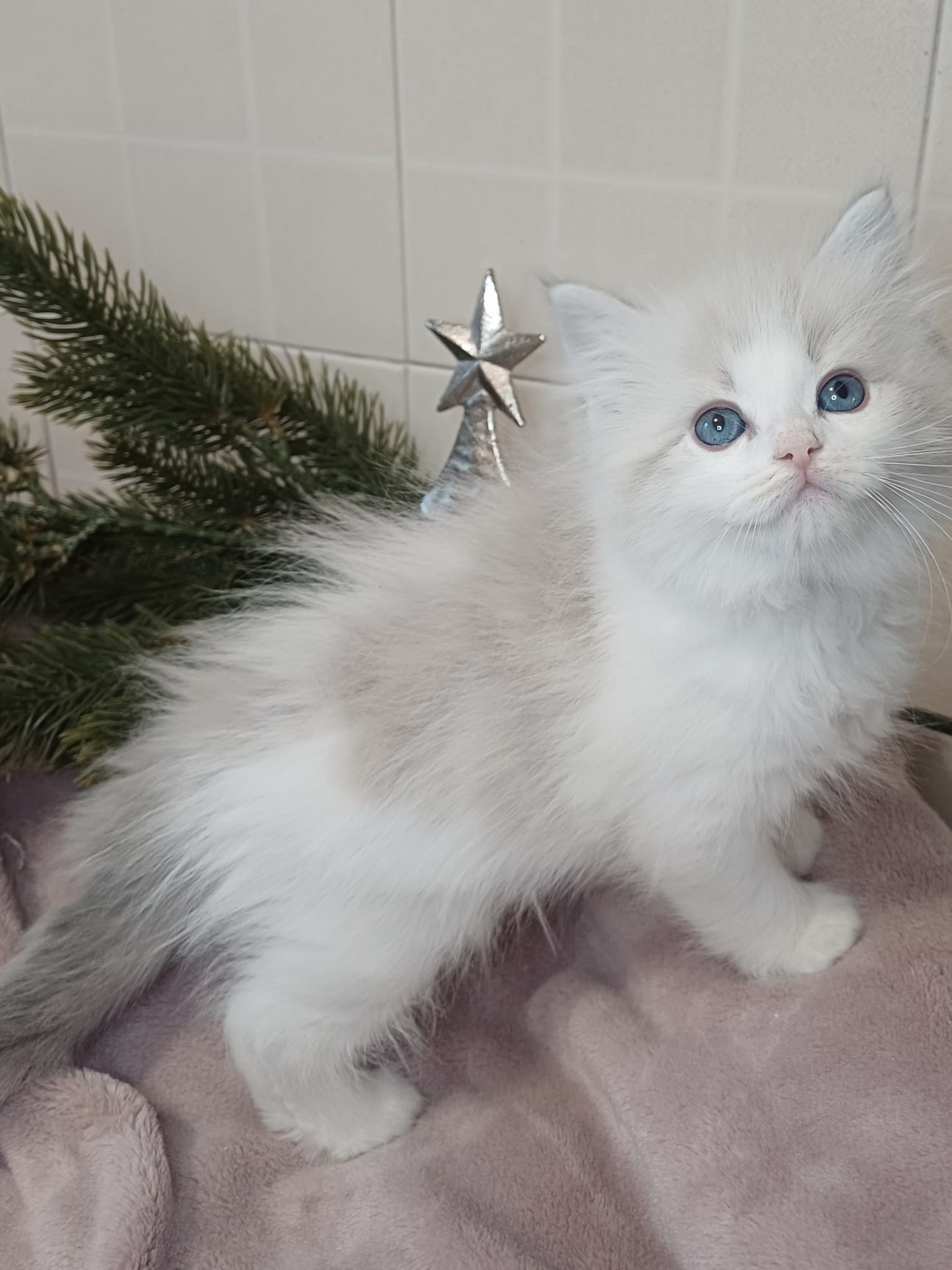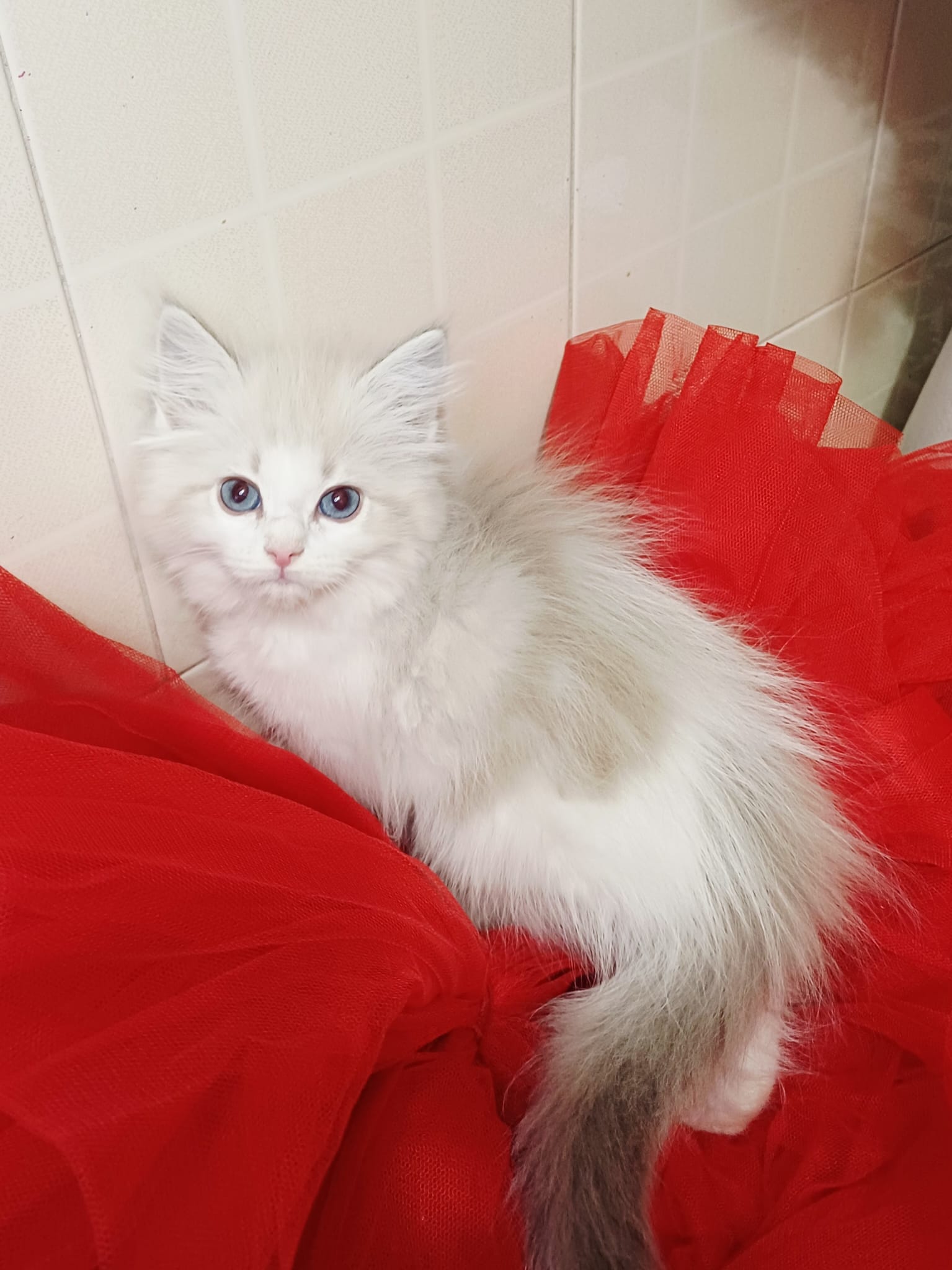 Splendida gattina blue tabby point bicolour. Ottima struttura fisica, bellissima morfologia, ottimo marking, occhi blu molto intensi sia nel colore che nell’ espressione. Pelo semilungo, folto e setoso al tatto, coda lunga e folta. Soraya è una gattina molto dolce ed equilibrata, elegante ed affettuosa. L’Amore di Gemma Soraya è DISPONIBILE come”SHOW-NEUTER “, ovvero come gattina dal potenziale espositivo ma da far sterilizzare una volta divenuta adulta.