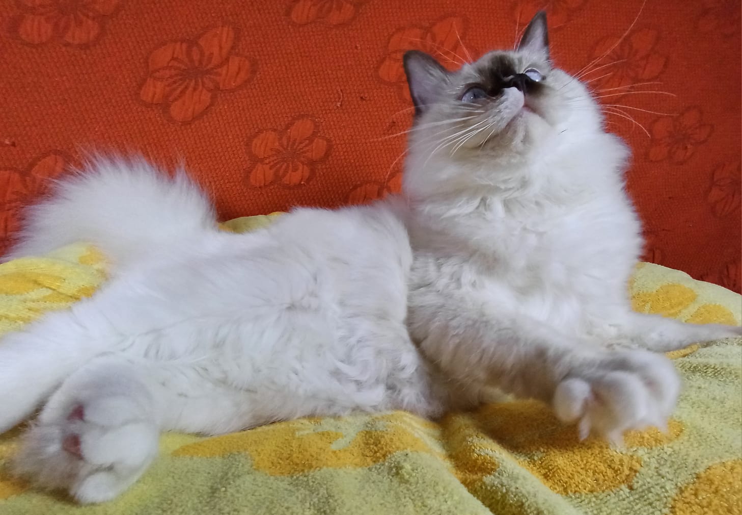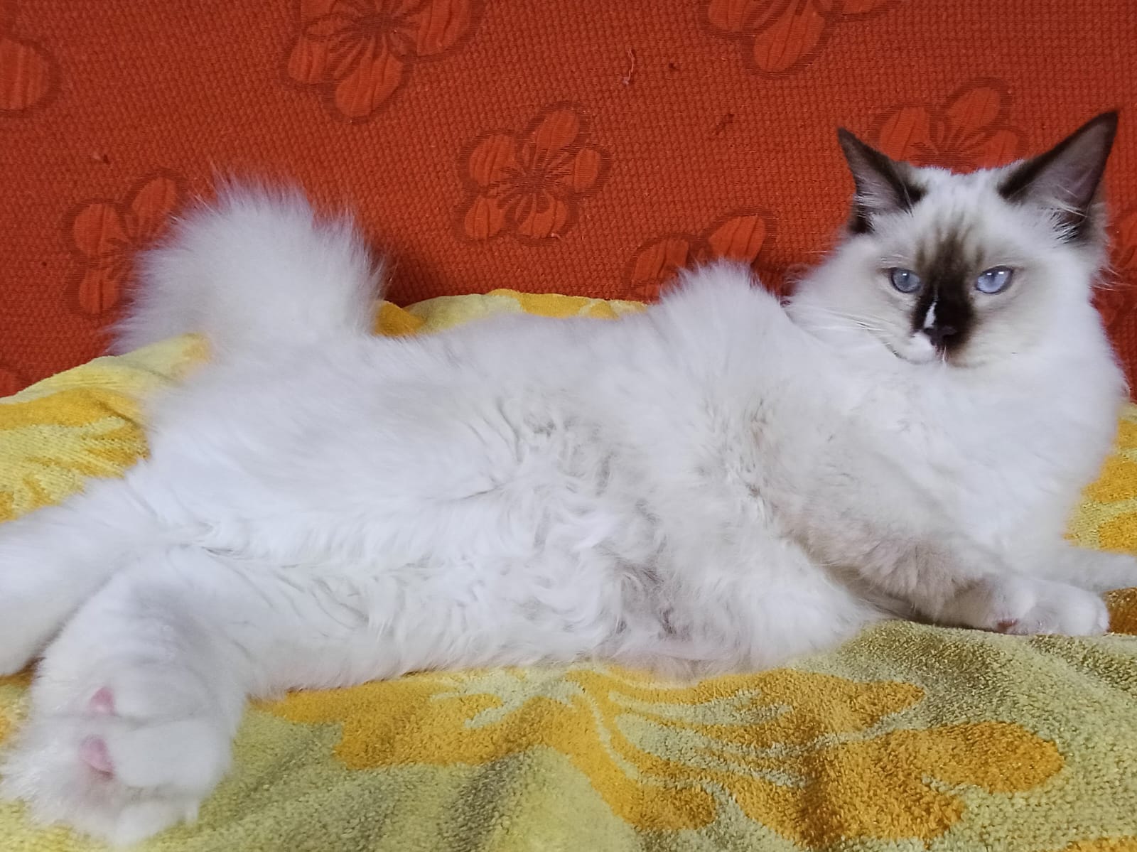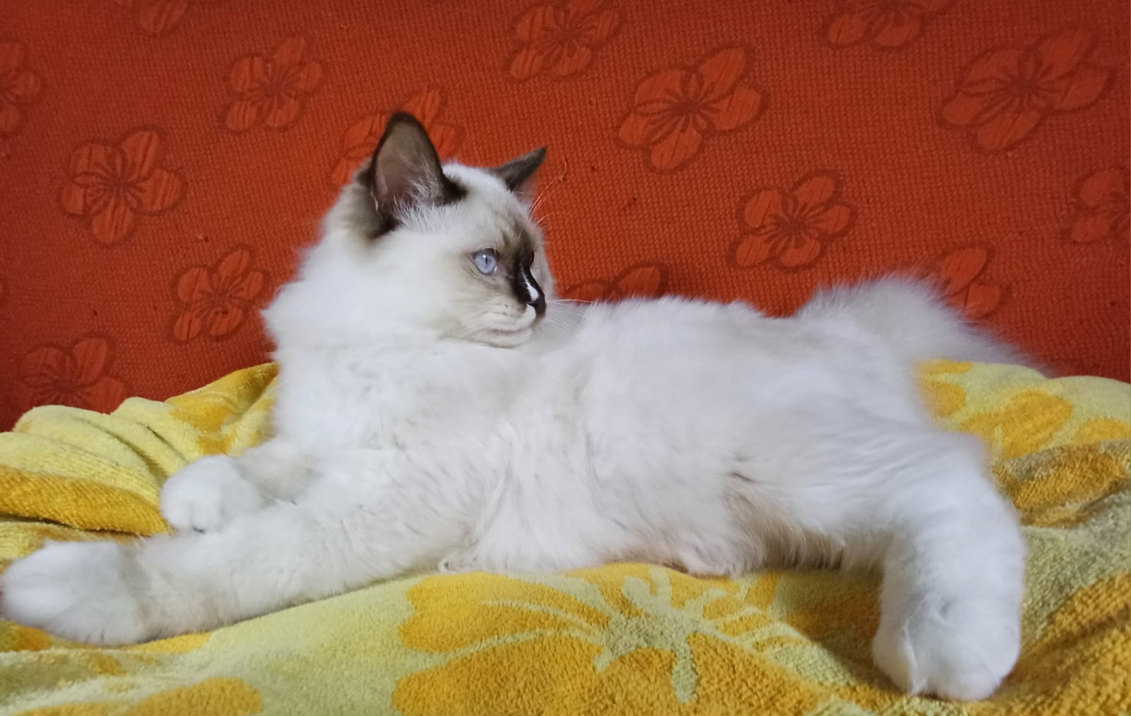 Meraviglioso gattino chocolate point mitted (con fiamma bianca sul nasino). Buona struttura fisica, bella morfologia, ottimo guantaggio, pelo semilungo, folto e setoso al tatto. Dolcissimo e totalmente rilassato quando viene coccolato e preso in braccio. WhiteAngels Shakeaspeare è DISPONIBILE come CUCCIOLO DA RIPRODUZIONE o eventualmente come “SHOW-NEUTER”, ovvero come gattino dal potenziale espositivo ma da far sterilizzare una volta divenuto adulto.
