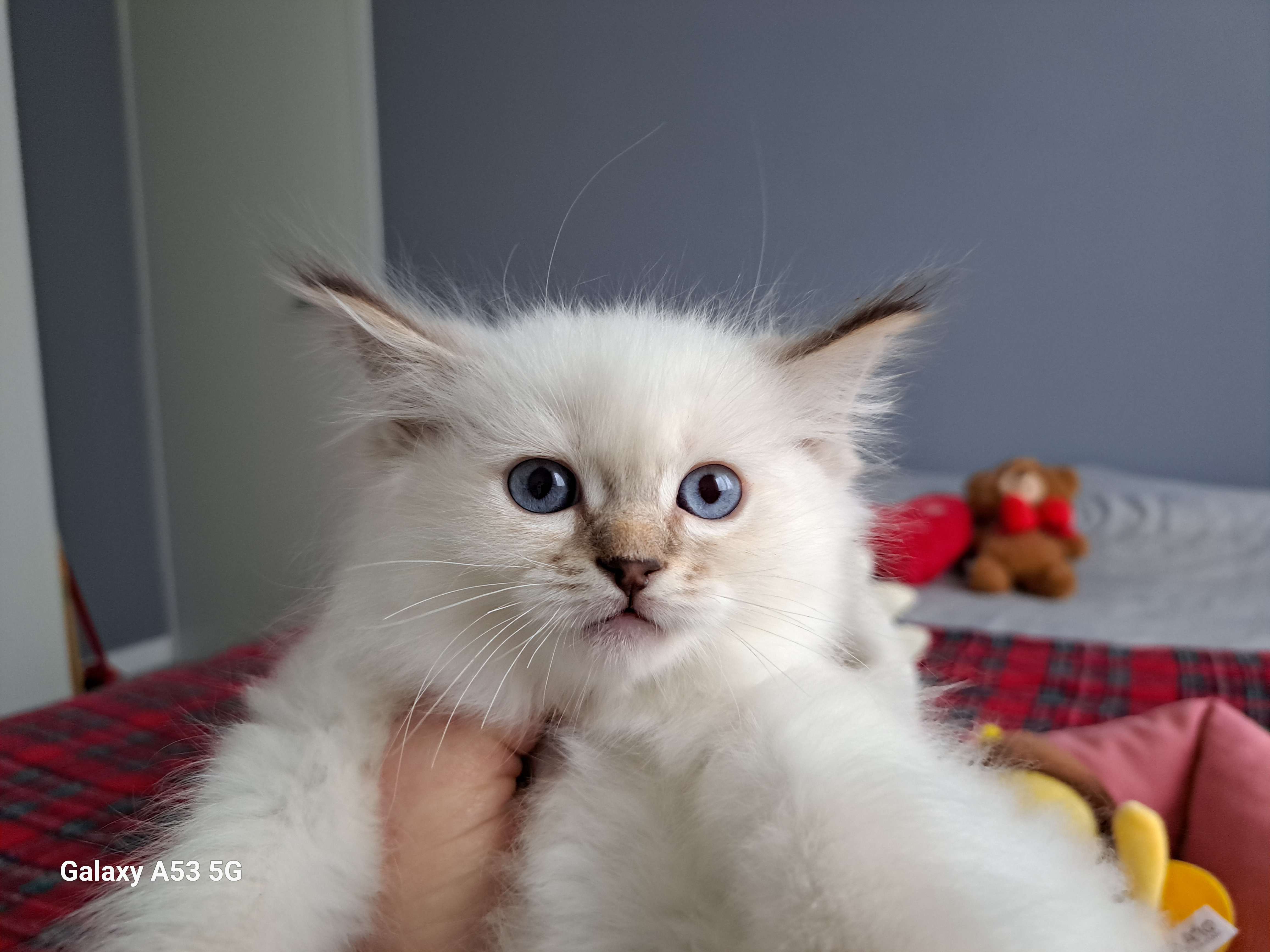 Fabulous blue point mitted kitten. Excellent physical structure, beautiful morphology, good markings, semi-long, dense coat…